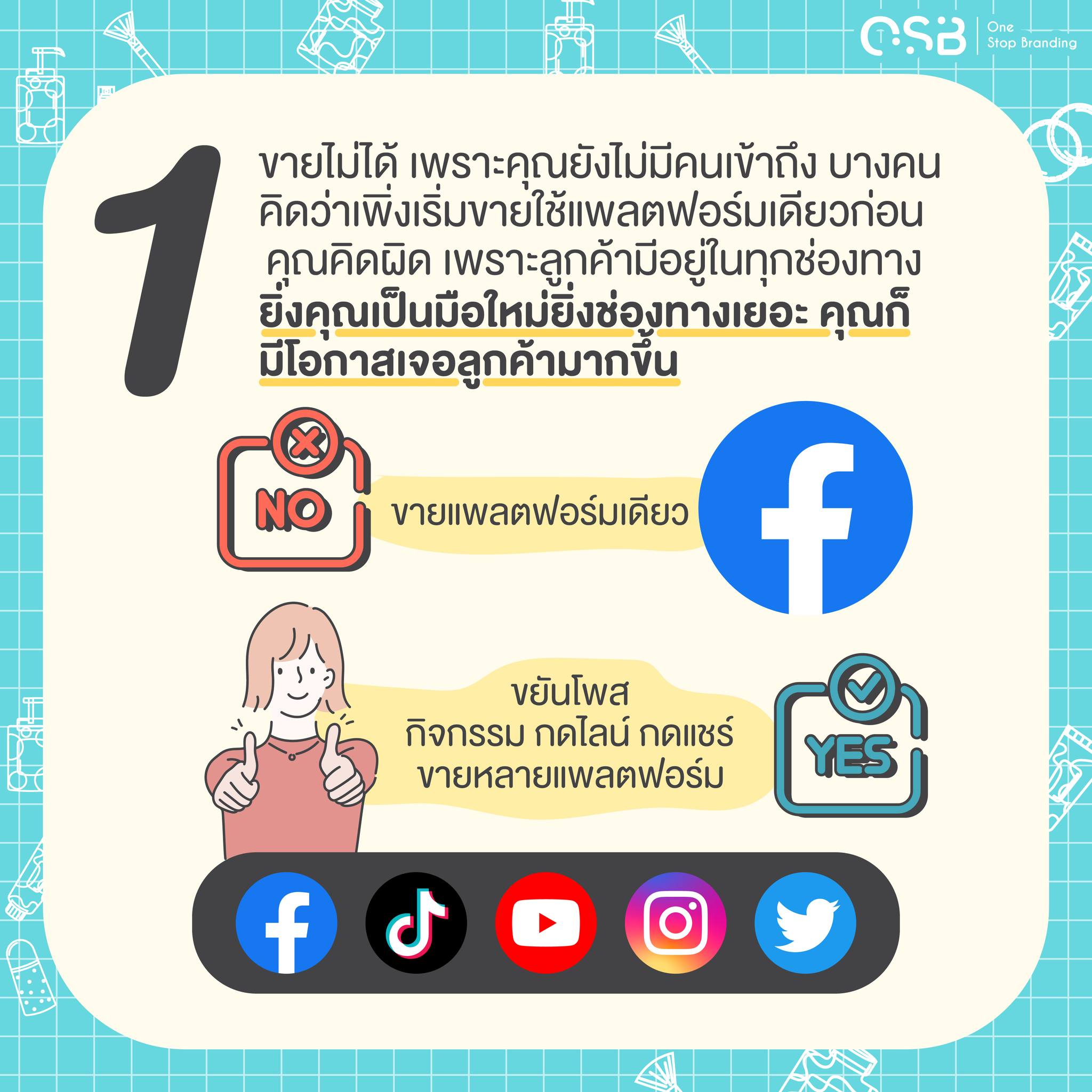 1. ขายไม่ได้ เพราะคุณยังไม่มีคนเข้าถึง บางคนคิดว่าเพิ่งเริ่มขายใช้แพลตฟอร์มเดียวก่อนคุณคิดผิด เพราะลูกค้ามีอยู่ในทุกช่องทางยิ่งคุณเป็นมือใหม่ยิ่งช่องทางเยอะ คุณก็มีโอกาสเจอลูกค้ามากขึ้น
